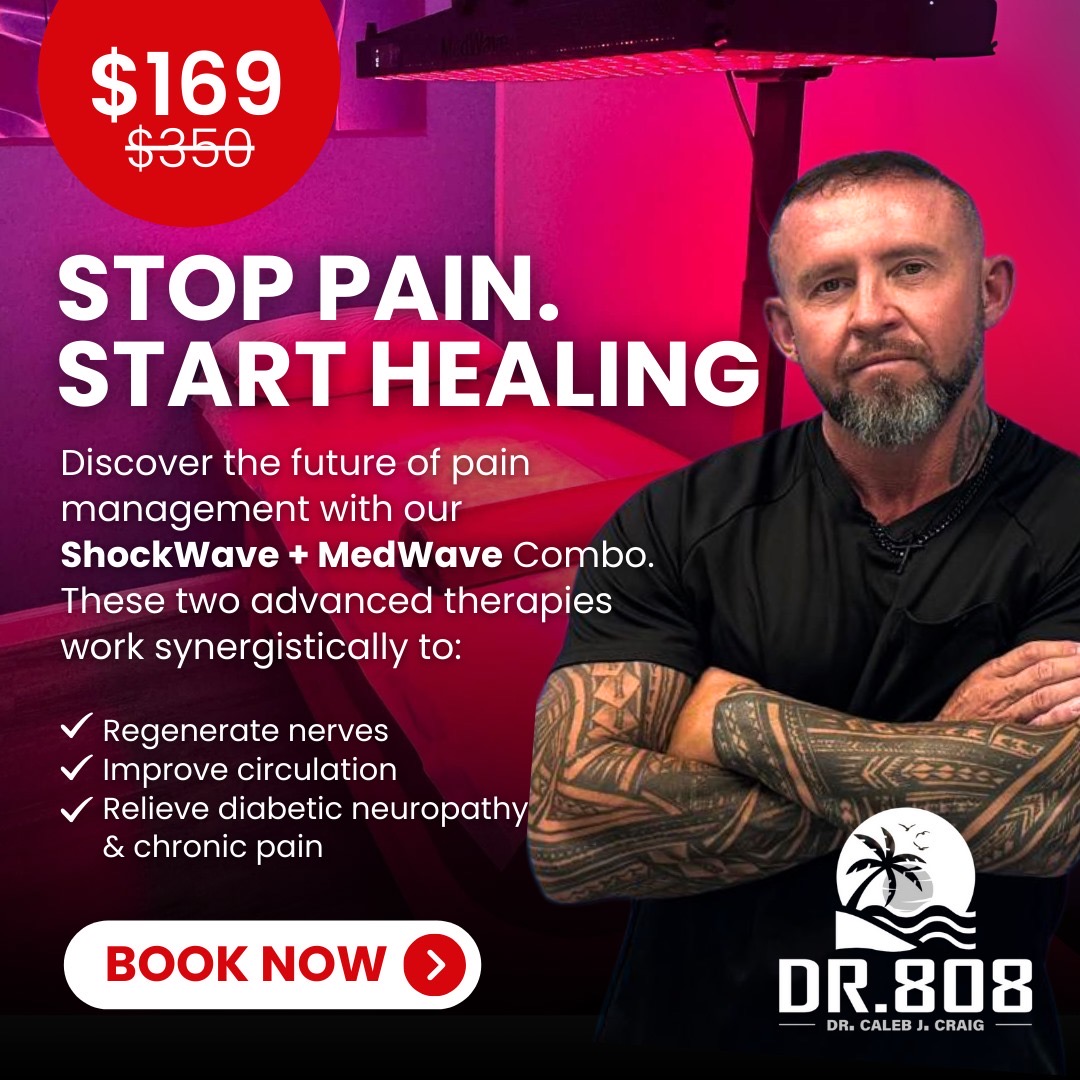 Red Light Therapy at Shockwave Maui is part of a broader recovery and wellness approach led by Dr. Craig, known locally as Dr. 808.